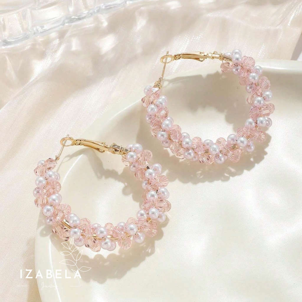 Perla Pink and Pearl Hoop Earrings