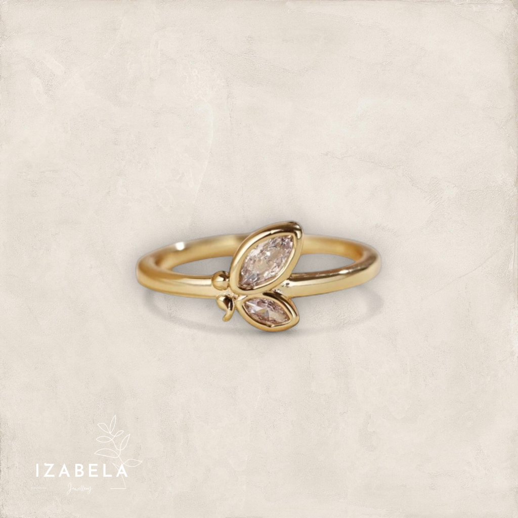 An 18K gold plated Bali round ring on a textured grey background, with the brand name 'IZABELA' visible at the bottom.